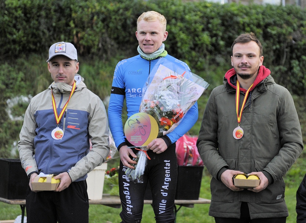 1- Alexis DELRIEU (VTT Argentat), 2- Bastien DAVIDOU (Brive Agglo), 3- Marceau SOL (Brive Agglo)