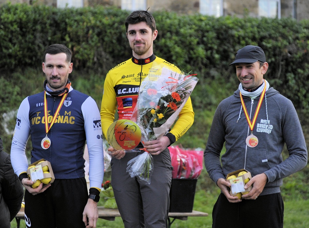 1- Quentin LEONARD (UC Lubersac), 2- Adrien SOULIER (VC Cosnac), 3- Clément SOULIER (VC Cosnac)