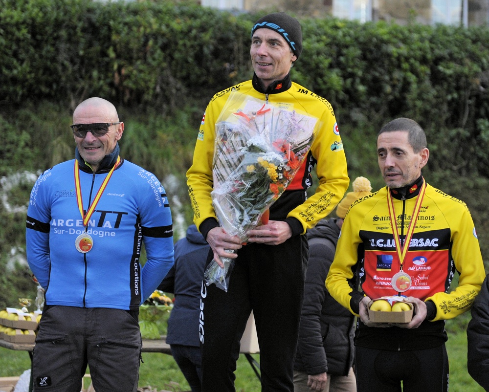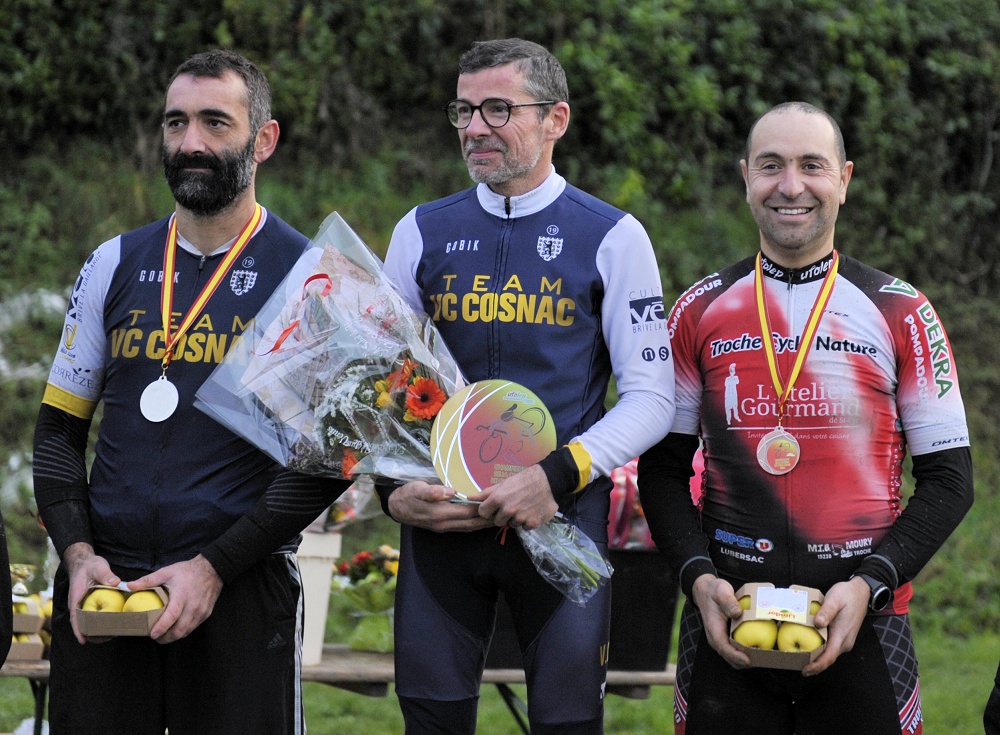 1- Yannick EGEA-GARCIA (VC Cosnac), 2- Laurent ROCHE (VC Cosnac), 3- Hamdi AMIRA (Troche CN)