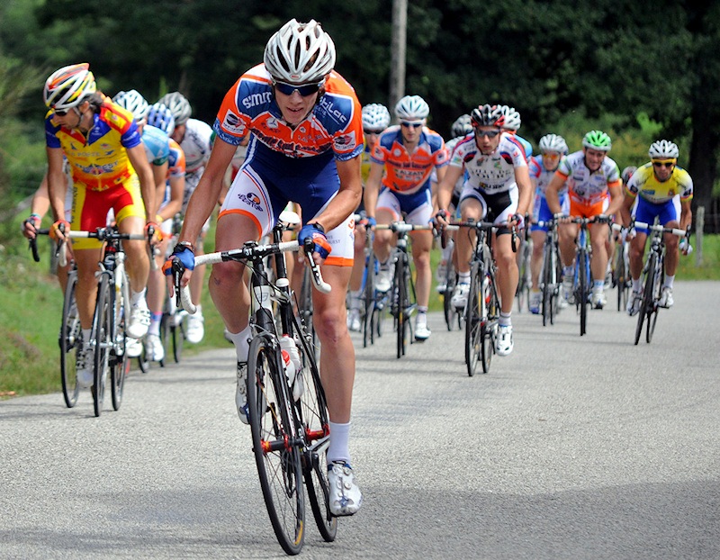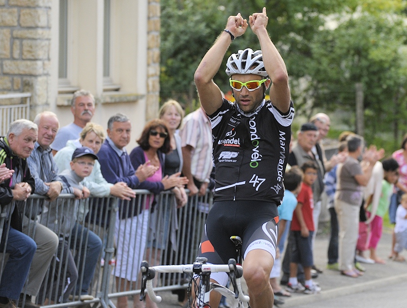 Comme le répétait le speaker, ce sont les coureurs qui font la course… Ce circuit, qui ne semblait « pas si difficile que ça » avec une seule côte, a fait la sélection de manière impitoyable. En prise depuis le départ, avec du vent de face et des petits à -coups jusqu’à Villevarlange, une relance suivi d’une partie roulante mais où on doit toujours pédaler, sur des routes tortueuses, et on était revenu au pied de cette fameuse bosse avec ses 600 m à 6% de moyenne suivi d’un court replat et encore 300 m pour monter à la ligne. Donc quand ça embraye sec, ça fait du petit bois et on a vu des pelotons exploser en petits groupes d’un tour sur l’autre.