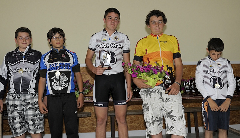 Classement Benjamins : 1 - Boniface Lucas (UC Condat), 2 - Rivet Benjamin (UC Condat), 3 - Bourdeix Pierre (VC Aubusson)