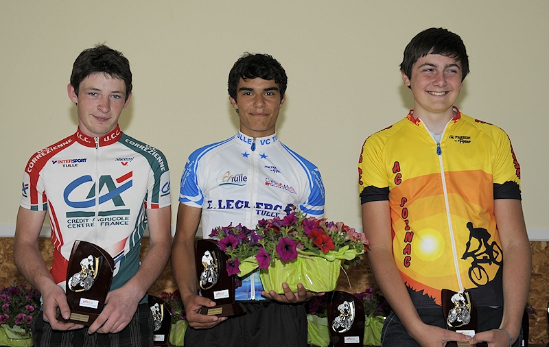 Cadets : 1- SIMOES ALEXIS (VC TULLE), 2- CUISY KEVIN (UC CORREZIENNE), 3- CESSAT MAXIME (AC COSNAC)