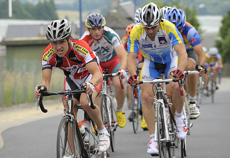 C’est un Benoît Luminet (CR4C Roanne) en grande forme qui s’est imposé samedi après midi sur l’épreuve des Boucles du Causse (19) organisé par l’UC Brive. Il devance ses 2 compagnons d’échappée Carl Naibo (US Montauban 82) et Jean Mespoulede (CC Marmande). Les 3 hommes de tête auront compté jusqu’à 2mn d’avance sur un peloton qui se morcelait à chaque tour, de part l’exigence du parcours mais aussi de la chaleur. Benoît Luminet se détache dans la dernière ascension afin de remporter la course avec 12 secondes d’avance. (Article Luc LENAERTS)