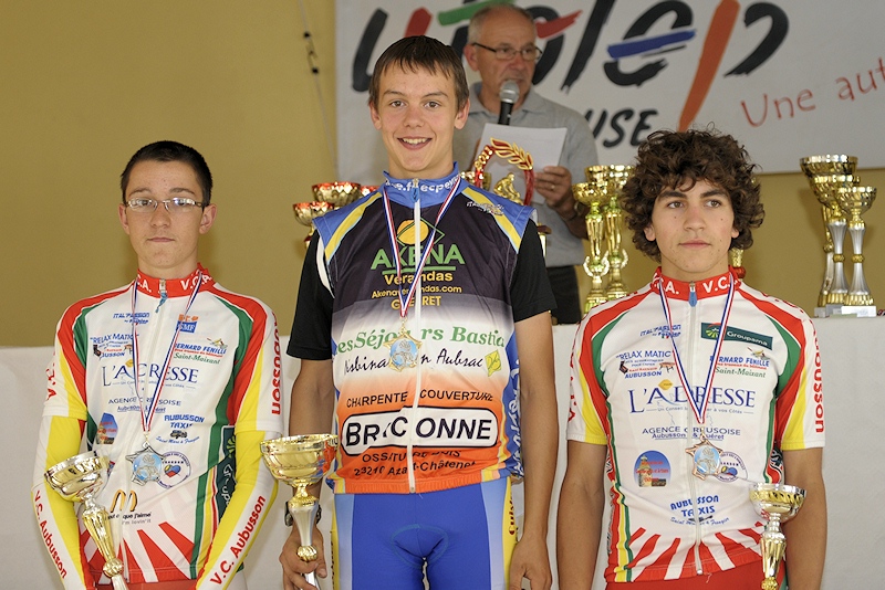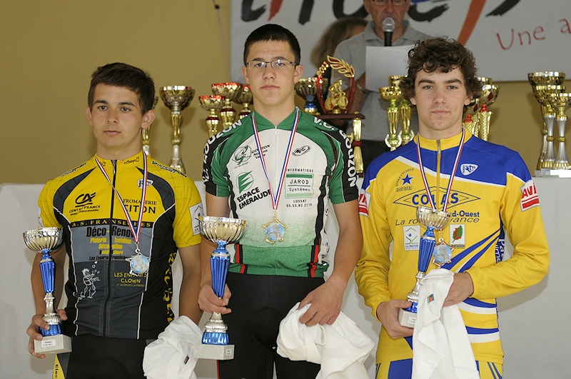 Cadets : 1- Guillaume Hudin (EC Peyrat 23), 2- Guillaume Rougier (UC Felletin), 3- Nicolas Verdy (AC Creusoise)