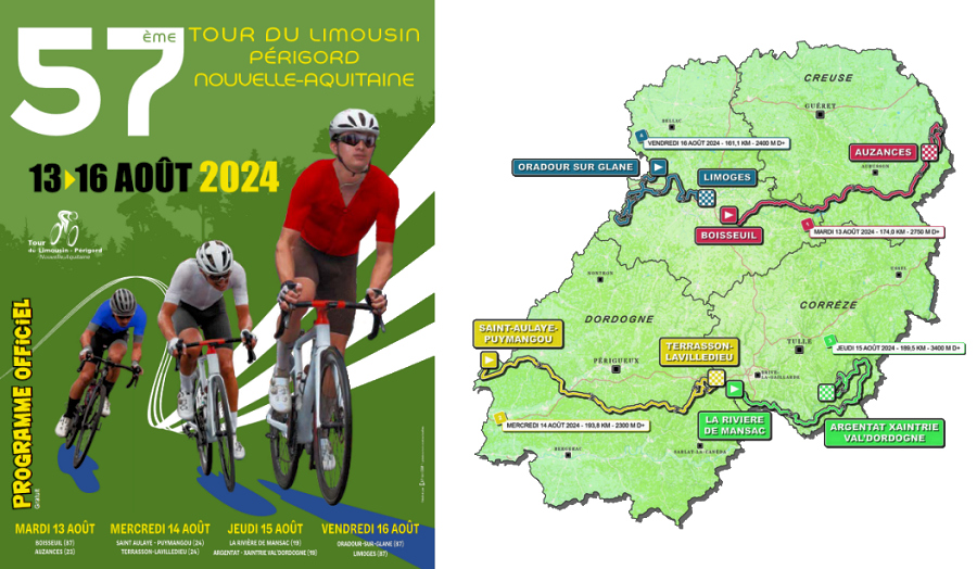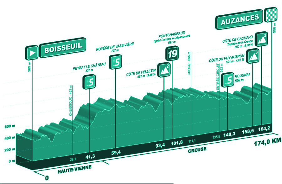 Pour cette première étape de la 57ème édition du Tour du Limousin Nouvelle-Aquitaine, les coureurs vont parcourir 174 kilomètres entre Boisseul (Haute-Vienne) et Auzances (Creuse). Dès les premiers tours de pédales le peloton s'étire et après quelques kilomètres, huit hommes s'extirpent du peloton : Louis BARRÉ (Arkéa-B&B Hôtels), Gorka SORARRAIN AGIRREZABALA (Caja Rural), Valentin MADOUAS (Groupama-FDJ), Alex BAUDIN et Jordan LABROSSE (Decathlon AG2R La Mondiale), Obie VIDTS (Intermarché-Wanty), Rayan BOULAHOITE (TotalEnergies) et Alexis GOUGEARD (Cofidis).