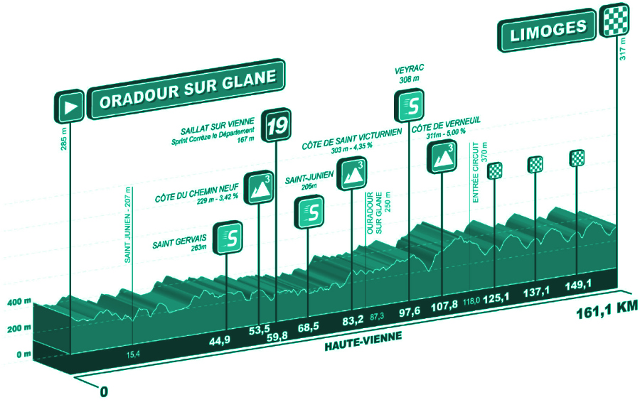 La dernière étape de ce Tour du Limousin 2024 se dispute entre Oradour sur Glane (87) et Limoges (87) sur 161 kms. Dès le début de course de nombreuses attaquent fusent mais la plus sérieuse propulse en tête Jordan JEGAT (TotalEnergies) Alexandre BALMER (Team Corratec-Vini Fantini), Kenny MOLLY (Van Rysel-Roubaix), Louka MATTHYS (Bingoal-WB) et Vinzent DORN (Bike Aid) qui comptent près de 2 minutes d'avance à un peu plus de 60 kms de l'arrivée.