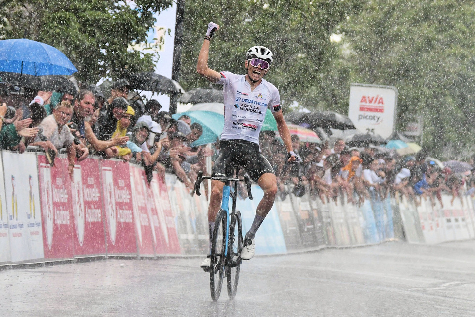 Alors que l'orage a décidé de s'inviter à la fête, Alex BAUDIN augmente son avance. A 3 kms de la'rrivée, il compte plus de 30 secondes d'avance. Alors que la pluie redouble dans ces derniers kilomètres, Alex BAUDIN va cueillir une belle victoire et s'empare par la même de la tunique jaune de leader.