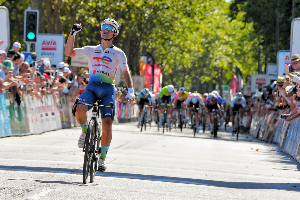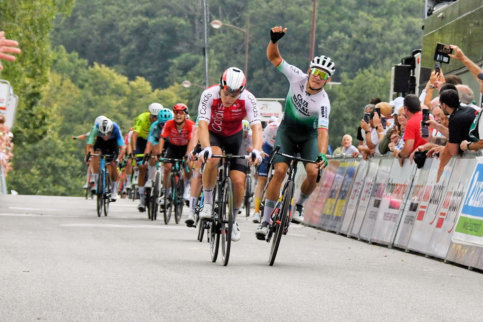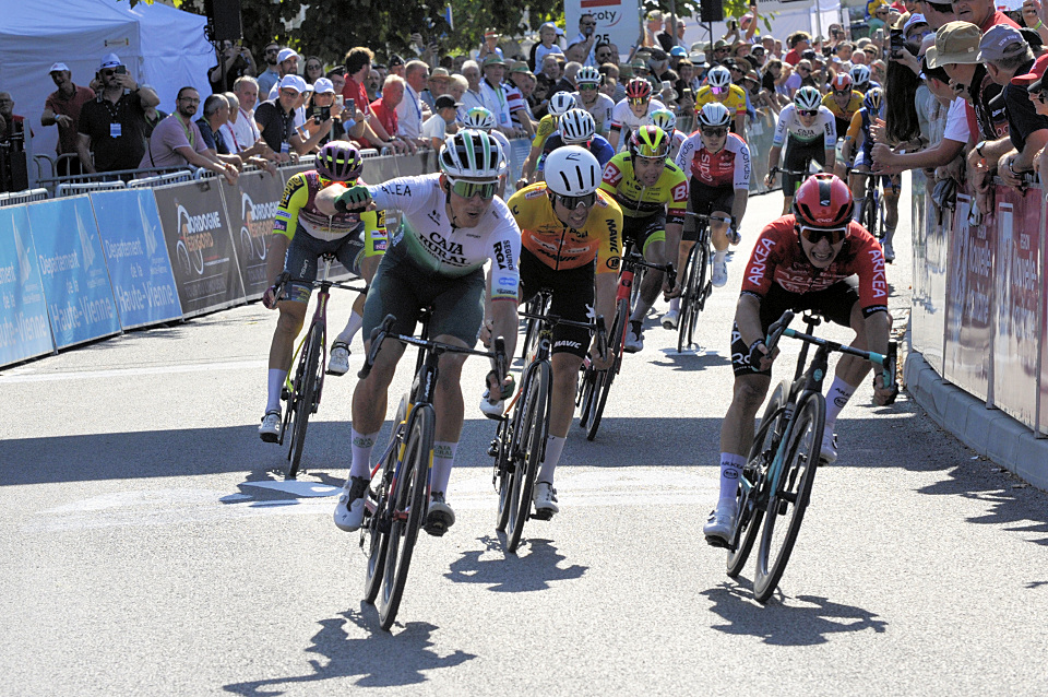 Il reste moins de 10 kms et l'allure est très rapide. Jordan JEGAT compte 10" d'avance mais à moins de 5kms de l'arrivée il est repris par l'avant-garde du peloton. Le sprint massif semble se profiler. Et c'est Orluis AULAR (Caja Rural) qui s'impose d'une demie-roue devant Axel ZINGLE (Cofidis) et Dorian GODON (Décathlon AG2R). A noter la belle 4ème place du régional Baptiste VADIC (TotalEnergies) et la 8ème place de Valentin RETAILLEAU (Décathlon AG2R).