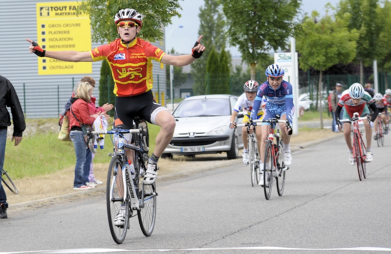 Le sprint victorieux de Lucas HAUFAUGERAT lors de la course minimes