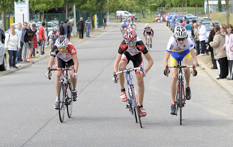 Arthur MEYRAT (au centre) s'impose au sprint dans la course cadets