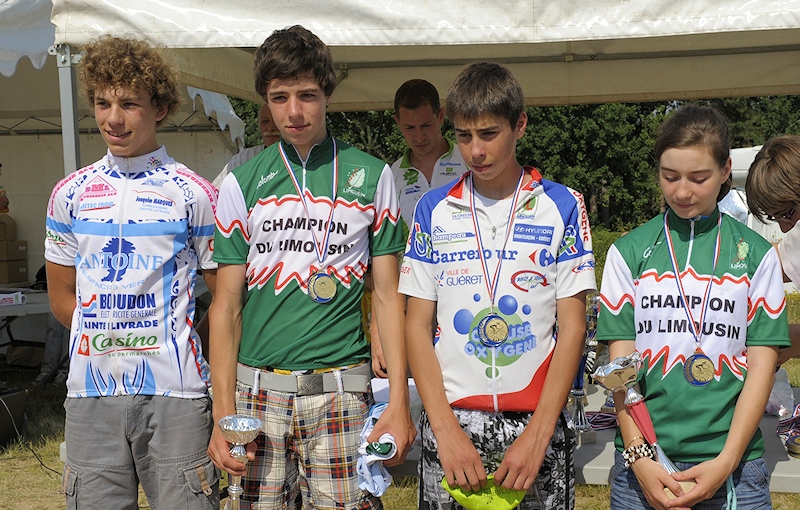 Thomas BERTIN de l'AS Cosnac remporte le titre dans la catégorie des 13/14 ans en devançant ses coéquipiers Yaneck AGIER et Nicolas CESSAT. Quentin MALPLANCHE (VC Saint-Clément) et Florian LORCLANCHER (AS Cosnac) prennent la quatrième et la cinquième place. Dans la catégorie supérieure, les 15/16 ans, Mallyck AGIER de l'AS Cosnac monte sur la plus haute marche du podium. Léo GARDY du VC Saint-CLément et Joan BADIN de l'AS Cosnac, complète le podium. Les places d'honneur sont attribués, dans l'ordre, à Maxime CESSAT (AS Cosnac), Quentin LIBREAU (AS Cosnac), Thomas CHASSAGNE (Troche CN), Sébastien CHALAUD (VC Saint-Clément).