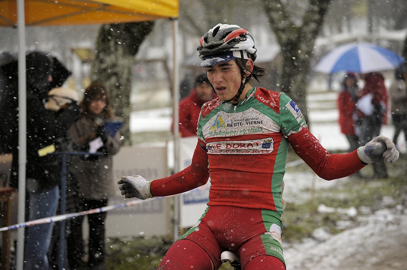Disputés sur le circuit traditionnel de Pageas, cher à O.Faure et toute l'équipe de l'UV Limousine, les Championnats du Limousin de cyclocross ont connu un beau succès. Dans la course reine des Séniors, David Menut prend les devant d'entrée et creuse rapidement les écarts sur un trio composé de David Thely, Jérémy Mounier et Julien Boyer. Au fil des tours, J.Boyer perd le contact de ses 2 adversaires qui s'attaquent à tour de rôle pour la 2ième place au scratch. Finalement, David Thely craque quelque peu et laisse filer Jérémy Mounier auteur d'un beau début de saison dans les rangs Elites avec notamment 2 19ième place sur les manches du Challenge La France Cycliste.
