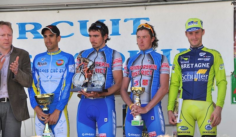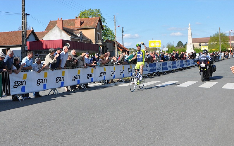 Le peloton se présenta donc groupé au moment d’affronter la dernière boucle de 30 kilomètres. Groupé, il ne le resta pas longtemps. Car, les grimpeurs Mederel, Luminet et Naibo secouèrent violemment le cocotier lors de l’ascension de Toulx-Sainte-Croix. On se retrouva alors avec des noix de coco disséminées partout sur le circuit ! Euh, pardon. On se retrouva alors avec de multiples coureurs lâchés. Il y en avait partout ! Huit hommes prirent finalement la poudre d’escampette : Gerbaud (Blois CAC41), Mederel (Auber 93), Naibo (US Montauban), Vachon (Bretagne Schuller), Brousse (Cycle Poitevin), Lutskovich (Team Primorskiy District), Edet (Team Veranda Sarthe) et Branquefort (Top 16). Sept de trop, selon Vachon. Alors, le professionnel de Bretagne Schuller haussa le ton en compagnie de Lutskovich. Derrière, cela se regarda en chiens de faïence. Vachon et Lutskovich en profitèrent. Ils continuèrent leur bonhomme de chemin jusqu’à l’arrivée. Et, sans surprise, le « pro » décramponna son partenaire de fugue lors du dernier kilomètre.