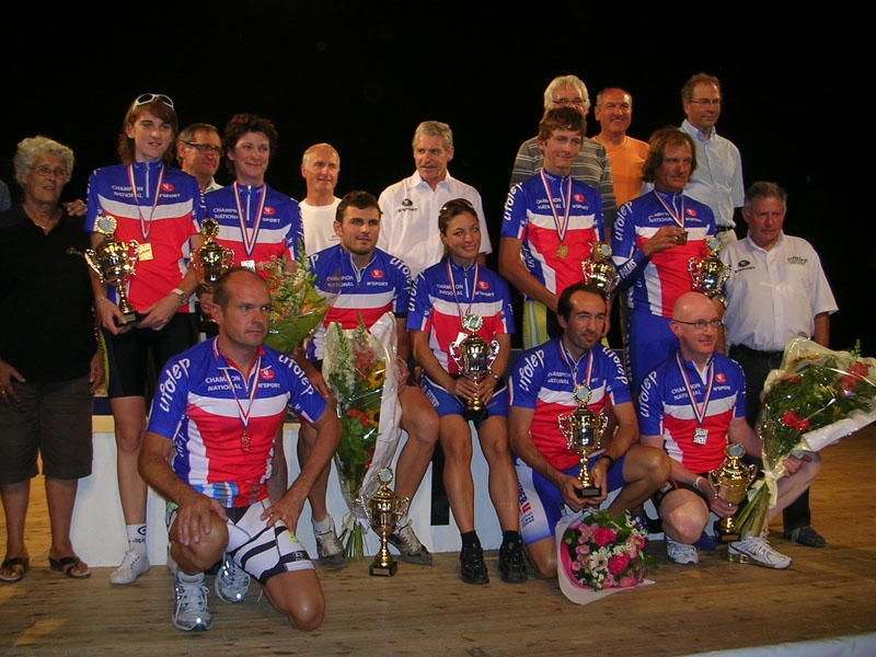 Christophe DELUCHE (Haute-Vienne) remporte le Titre de champion de France UFOLEP du Contre-la-Montre en vélo couché à Jarnac (16). Après son titre de Champion de France UFOLEP de Cyclo-Cross l'an passé, Christophe s'investit à fond dans sa passion et sort quelquefois des sentiers battus comme cette année pour grimper sur la plus haute marche avec sa machine bien particulière (voir photo ci-dessous).