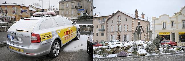 La troisième étape de Paris-Nice, qui se dispute ce mercredi entre Saint-Junien et Aurillac, a été raccourcie en raison de la neige dans le nord de la Haute-Vienne. Initialement longue de 208 kilomètres, elle sera amputé des 53 premiers kilomètres prévus à l'origine. Le départ a été donné de Saint-Yrieix-la-Perche.