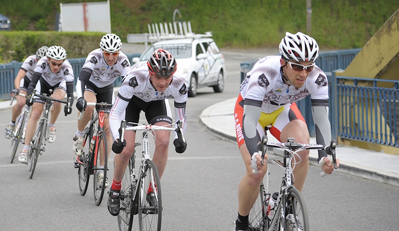 Lors de la première grande boucle de 30 kilomètres, Nicolas Edet (Team Veranda Sarthe), Paul Brousse (Cycle Poitevin) et Alexander Budaragin (Team Primorskiy District) profitèrent de la réputée côte de Toulx-Sainte-Croix pour prendre la clef des champs. Personne ne broncha. Même pas Vachon. Pourtant, « généralement au bout de la première boucle, la course est déjà pliée », admis le lauréat 2007. Même si les trois fuyards s’entendirent comme larrons en foire, l’avance n’excéda jamais la minute. Alors, arrivée sur les 16 tours de circuit (4,6 kms), l’échappée fût littéralement avalée par un peloton qui se mit à embrayer sec. On eut alors le droit à un avant-goût des nocturnes estivales. Ca vissait fort, ca frottait dur et ça attaquait de partout ! L’échappée la plus sérieuse est à mettre au crédit de Médéric Clain (ST Cyr Tours 37), Georges Benette (CR4C Roanne), Nicolas Edet (Team Veranda Sarthe) et trois autres compères. Cependant, l’équipe d’Océane Cycle Poitevin ramena les garçons à la raison.