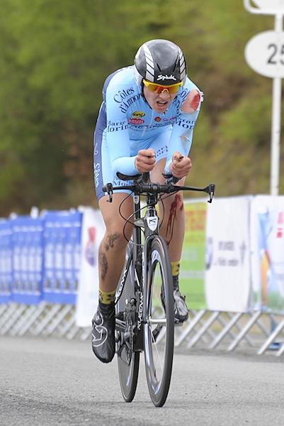Côté conditions météo, les organisateurs ont été épargnés. Pas une seule goute de pluie tout au long de cette journée consacrée au cyclisme de haut niveau. Car il faut bien parlé de haut niveau car la fine fleur du cyclisme hexagonal était présente au départ. Tanel KANGERT de l'équipe de Saint-Etienne a longtemps détenu le meilleur temps de l'épreuve. Mais au final Paul POUX (Sojasun) met tout le monde d'accord en couvrant les 27.2 kms du circuit en 34 minutes et 25 secondes à plus de 47 km/h de moyenne.