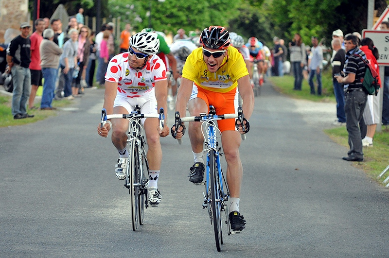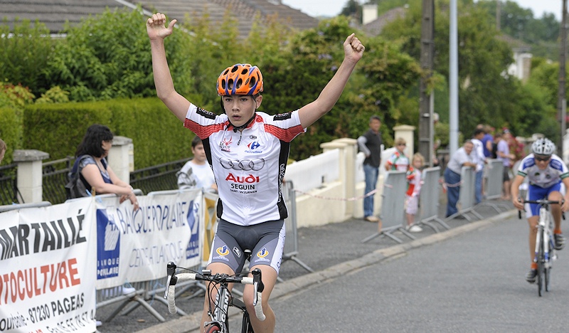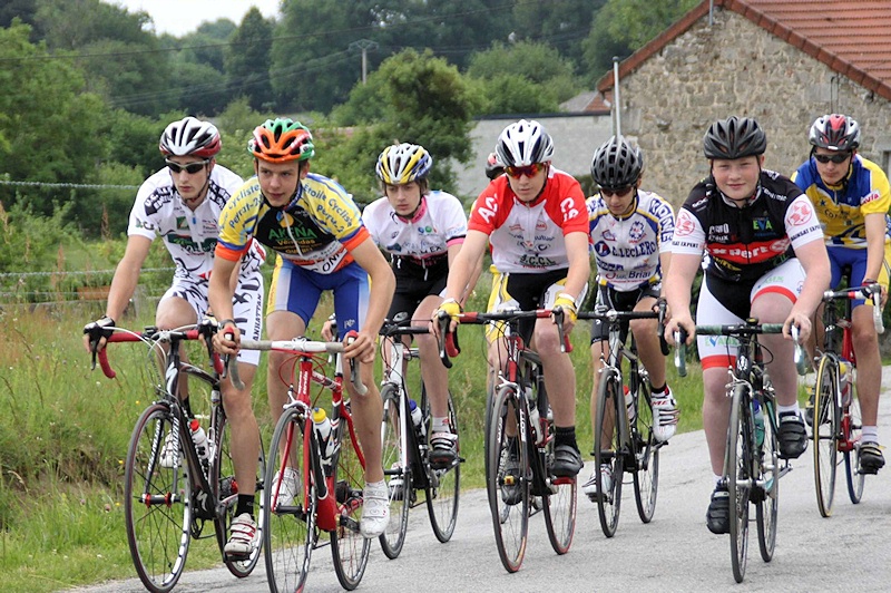 Dans les catégories où il était plus difficile de dégager des noms pour les titres, le suspense n’a pas été moindre, sauf en 17/19, J. Camus ayant pris les choses en mains pour ne pas prendre des risques. Il l’emportait facilement devant J. Raynaud et K. Benard. Les 15/16 arrivaient à 3 pour le podium, D. Breux lançait le sprint à l’entrée du bourg mais D. Betoulle restait dans sa roue et le coiffait au dernier moment, laissant la 3ème place à P. Lucas. Le peloton des 50 et + restait longtemps groupé malgré beaucoup d’attaques en début de course. Après le dernier passage sur la ligne, B. Menier sortait tranquillement, rejoint par D. Klein, puis par E. Monjoffre. Les 3 se présentaient ainsi pour l’arrivée et là encore les ultimes coups de pédale faisaient la décision : Klein-Monjoffre-Menier.