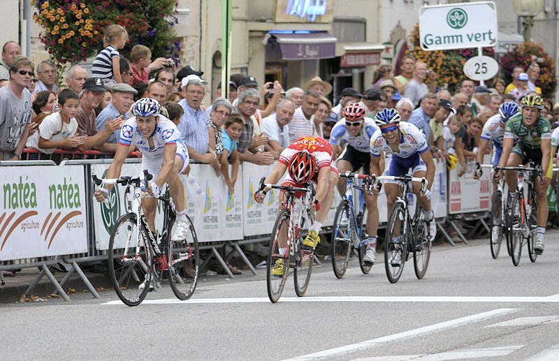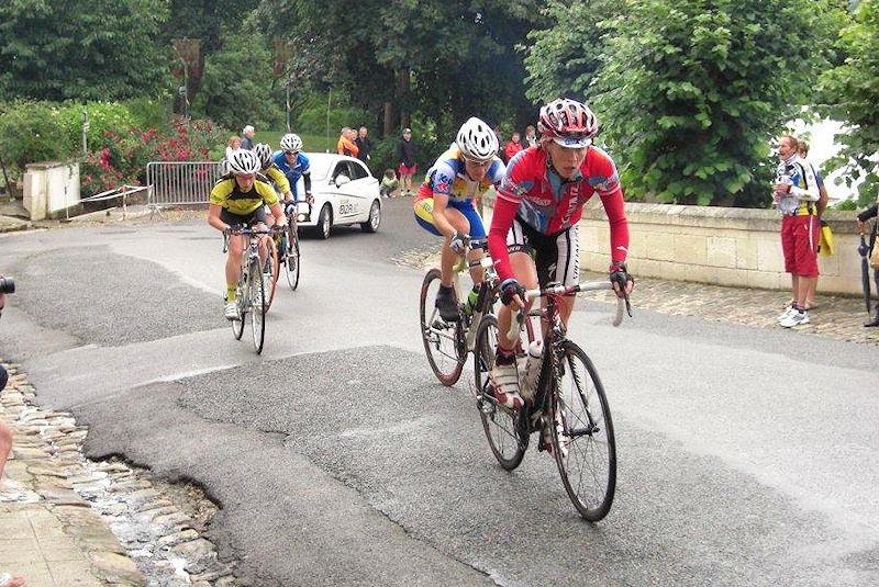 Comme le répétait le speaker, ce sont les coureurs qui font la course… Ce circuit, qui ne semblait « pas si difficile que ça » avec une seule côte, a fait la sélection de manière impitoyable. En prise depuis le départ, avec du vent de face et des petits à -coups jusqu’à Villevarlange, une relance suivi d’une partie roulante mais où on doit toujours pédaler, sur des routes tortueuses, et on était revenu au pied de cette fameuse bosse avec ses 600 m à 6% de moyenne suivi d’un court replat et encore 300 m pour monter à la ligne. Donc quand ça embraye sec, ça fait du petit bois et on a vu des pelotons exploser en petits groupes d’un tour sur l’autre.