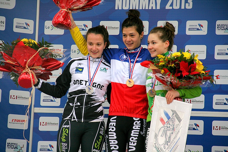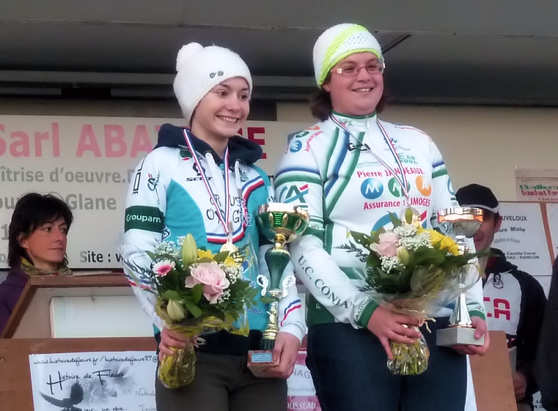 Si Françis MOUREY est venu glaner un septième titre national pour se hisser au niveau de notre légende limousine André DUFRAISSE, les ambitions des uns et des autres étaient de nature différentes. L'accéssion au maillot tricolore ou même une place sur le podium était dans la tête de notre jeune équipe limousine. Les fortunes ont été diverses et c'est de la jeune et charmante Audrey MENUT (Creuse Oxygène) qu'est venu le podium tant espéré. En prenant la troisième place de l'épreuve Dames Juniors, elle confirme sa capacité a être présente dans les grands rendez-vous. En 2011, elle avait accédé au titre suprême en catégorie cadettes, elle confirme aujourd'hui son statut de Championne et s'impose comme une valeur sûre dans cette discipline.