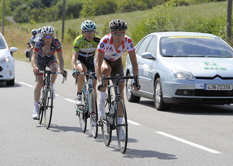 Au km 75, dans la côte de Malangle (qui ne comptait pas pour le classement du maillot à pois) les trois hommes unissent leurs efforts pour compter plus de 5' d'avance sur un peloton groupé enmené par l'équipe du maillot jaune IAM Cycling.