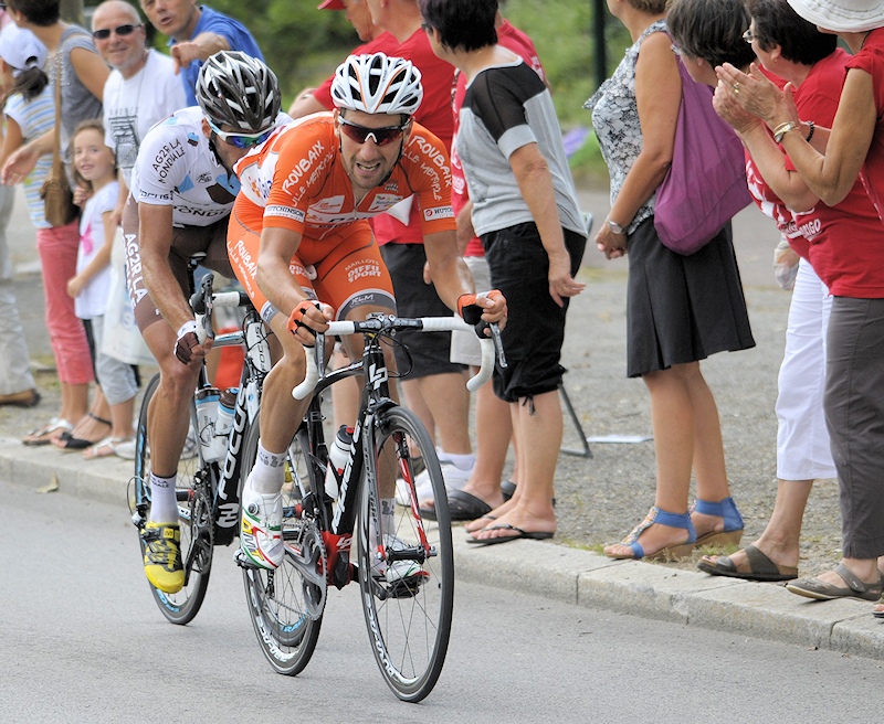 Au deuxième passage, c'est au tour de Evaldas SISKEVICIUS (Sojasun) et Thomas ROSTOLLAN (La Pomme Marseille) de tenter de sortir du groupe d'échappée qui ne compte plus que 2 minutes d'avance sur un peloton toujours conduit par les coéquipiers du maillot jaune.