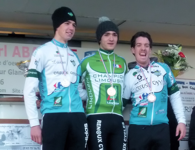 Au fil des week-end, les hommes forts du cyclo-cross limousin se sont affirmés en terminant régulièrement sur les podiums. La semaine avant le Championnat de France à Nommay (Doubs), lors de l'épreuve de Championnat GSO à Montluçon, les limousins se mettent en évidence en remportant la quasi totalité des titres avec notamment Benjamin GELABERT (Creuse Oxygène) vainqueur en Séniors, Mathieu MORICHON (CO2) sur la plus haute marche en Juniors devant Romain BOUTET (CO2), Raphaël GAY (CO2), Raphaël DUBUC (CO2), Victor TOURNIEROUX (CRCL). Audrey MENUT (CO2) termine deuxième chez les féminines juste derrière Ludivine LOZE (Montauban) et devant Mélanie BRAVARD (Vélophile Naintréenne). Nathan BLONDY et Thomas FOURNERON (Creuse Oxygène) s'imposant respectivement dans la catégorie Cadets et Minimes.