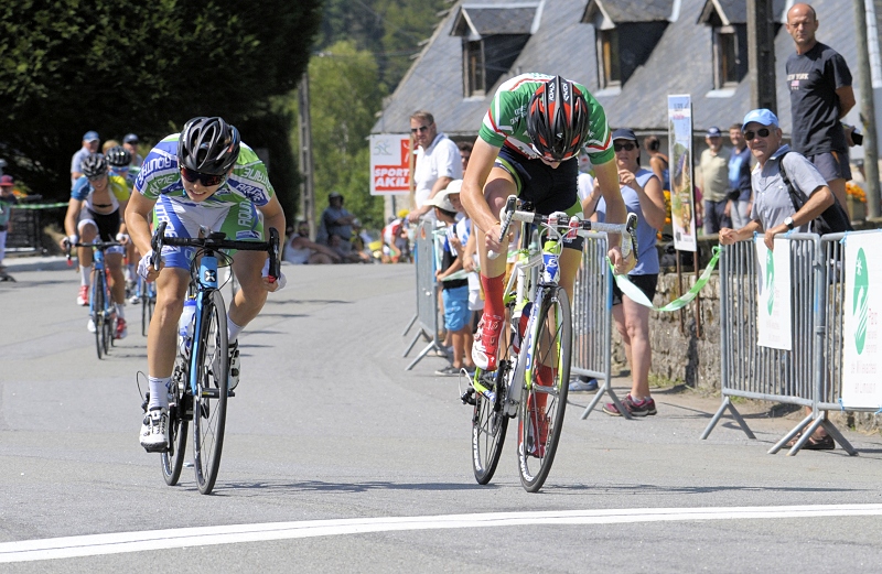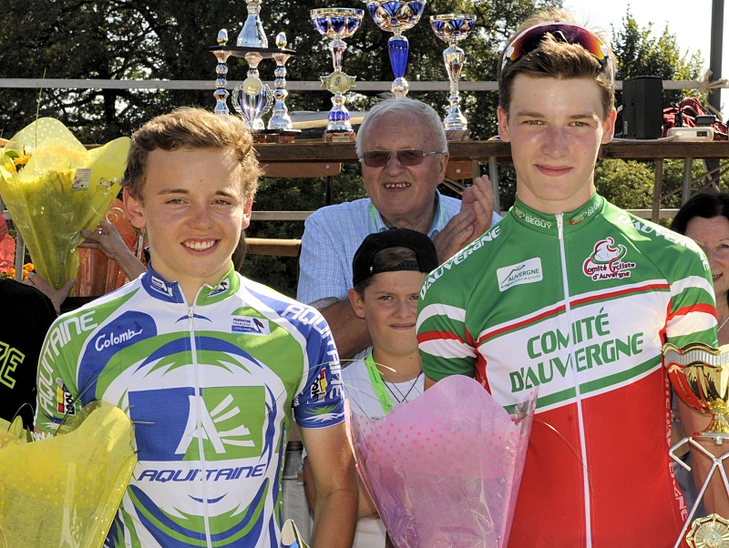 Chez les Cadets, Antoine GRAND (Auvergne) s'impose d'un rien au sprint devant Nicolas BOUDAT (Aquitaine)