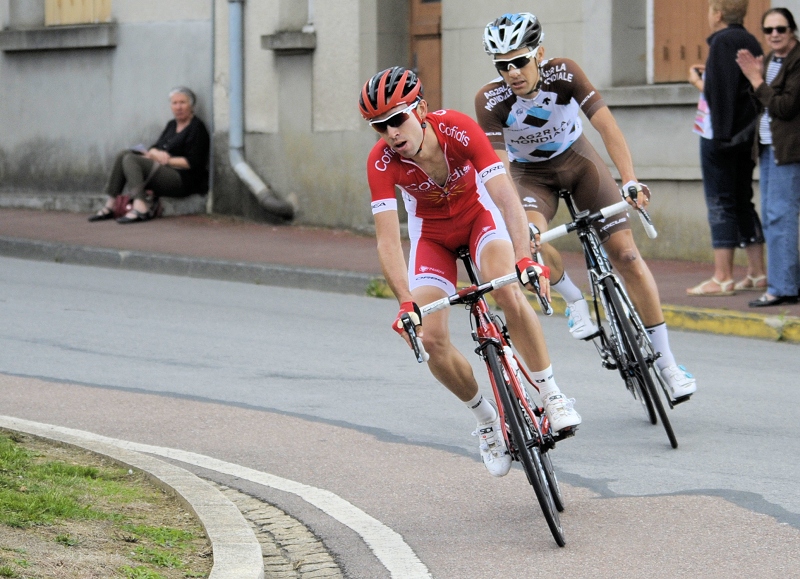 Dans la côte du Pont du Dognon 3 coureurs sortaient prenant jusqu’à 30“ au reste du groupe mais le regroupement s’effectuait peu avant St Priest Taurion. Dans la côte du Mazeau, nouvelles escarmouches et finalement le groupe éclatait littéralement sous l’impulsion de Maxime Dulau (UVL), qui était rapidement repris , et désormais 8 coureurs contituaient l’avant-garde de cette course : Beluc, Geaujar (AC2R), Marginier, Bastien (Minnerva oil), Cassan (UCC), Dulau (UVL), Lévéque (Girondins de Bordeaux) et Pelizzari (Cyclo Seyssinet).