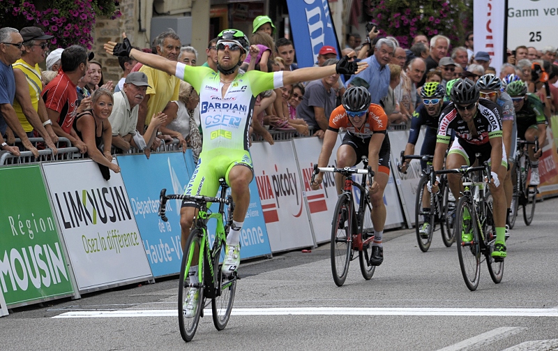 Au programme de cette ultime journée un parcours long de 165 kms entre Aixe sur Vienne et Limoges. Une baggare qui s'annonce épique tant les écarts entre les concurrents sont faibles. Dès les premiers kilmètres l'allure et vive tout comme la chaleur. Dès les premiers coups de pédales les attaques fusent mais le peloton veille. Le premier sprint intermédiaire à Burgnac (km 18) voit la victoire de Sonny COLBRELLI (Bardiani) qui récupère 3" de bonnifications, il pointe désormais à 6" du leader de la course car celui-ci termine deuxième de ce sprint et prend 2" de mieux. Rudy MOLARD complète le podium et empoche 1" de bonnification. Les prétendants à la victoire finale sont bien présents.