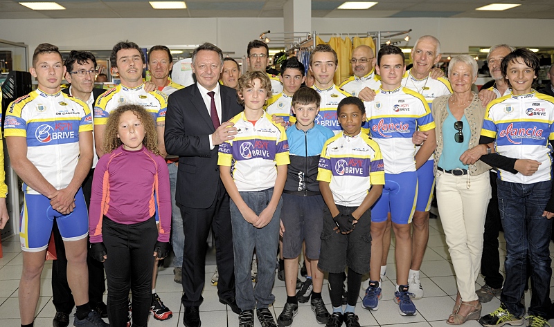 Monsieur le Ministre a salué et encouragé les cyclistes des clubs présents et notamment les jeunes de Brive-Triathlon, l'équipe de l'ASPTT Brive et les représentants du Team Elancia VC Tulle. Madame La Députée, Sophie DESSUS, a longuement discuté avec Vincent GOUMY et Alexis SIMOES du Team Elancia. Ce dernier a d'ailleurs évoqué avec Monsieur le Ministre les bienfaits que lui ont apporté l'étude posturale proposée par Alain DE Carvalho et toute son équipe.
