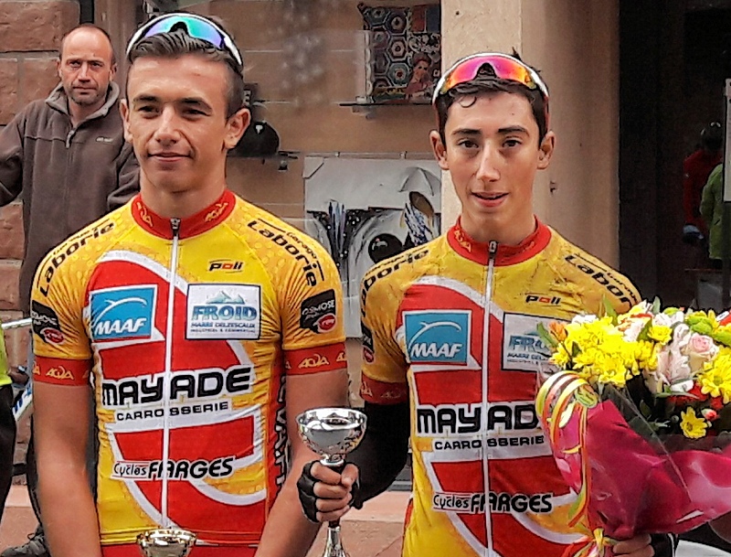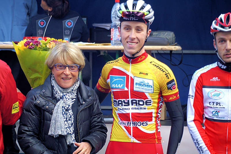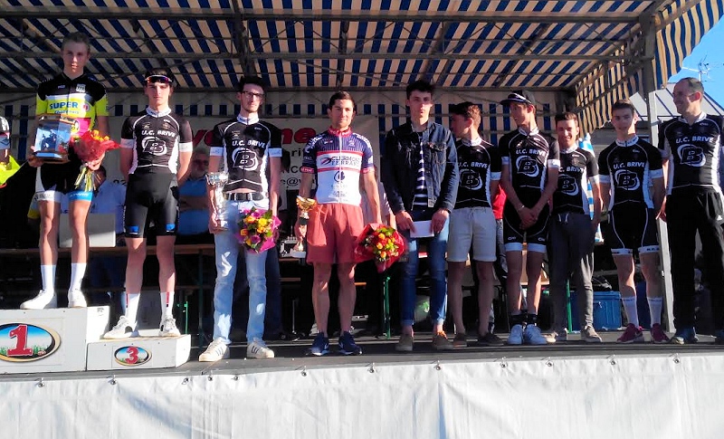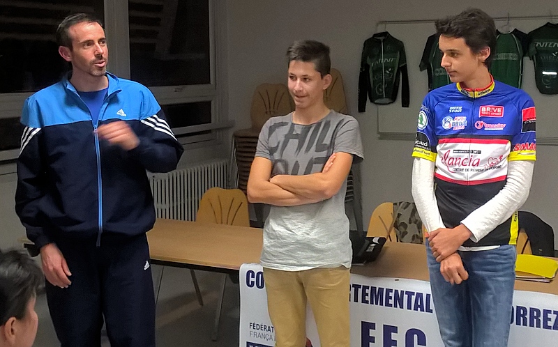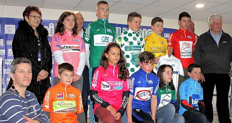 Romain Bréant (EC Ambazac), minime 1ère année, Lisa Beaubrun (VC Tranzault), minime fille, Manon Chicaud (Creuse-Oxygène), Baptiste Vadic (Creuse-Oxygène), cadet et meilleur 1ère année, Théo Fatowiez (Creuse-Oxygène), meilleur sprinteur, Brice Dujardin (UC Felletin), meilleur grimpeur, auront l'honneur de défendre leur beau maillot de leader lors de la seconde manche, samedi 1er avril à Saint-Dizier-Leyrenne. A noter que celui-ci leur a été remis par le coureur professionnel creusois David Menut, venu en voisin.