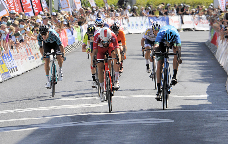 Cinq hommes peuvent désormais remporter l'épreuve. Dans les deux derniers kilomètres, Franck BONNAMOUR (B&B) candidat à la victoire de l'épreuve tente son va-tout en compagnie de son coéquipier Bryan COQUARD. Mais Waren BARGUIL revient et attaque à son tour mais sans réussite. Peu avant la flamme roue du dernier kilomètre, Erik FETTER (Eolo-Kometa) attaque et garde une longueur d'avance sur la ligne d'arrivée. Son coéquipier Vincenzo ALBANESE termine second et Valentin MADOUAS (Groupama FDJ) termine troisième.