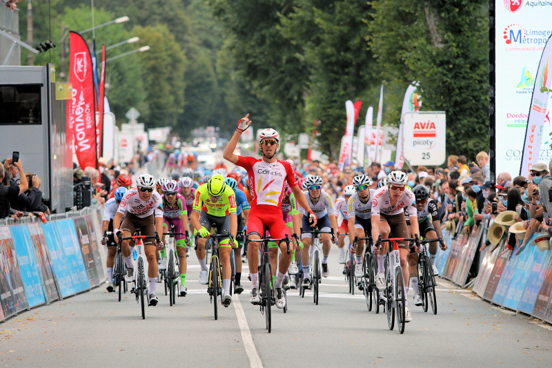 Simone VELASCO (RusVélo) s'impose en solitaire à Lubersac. Il devance de 11 secondes le groupe d'échappée réglé au sprint par Simon GESCHKE (Cofidis). Luca WACKERMANN (Eolo) prend la troisième place du jour. Le peloton termine à 22 secondes de l'homme de tête.