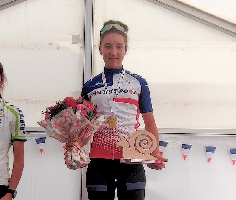 Le Championnat National UFOLEP 2022 est organisé par l'Ufolep Côte d'Or et le Vélo Sport de Trouhans à Villers-la-Faye les 15/16/17 juillet 2022. Diane FROUARD (Sélection Corrèze - Troche CN) était parmis les favorites au départ de sa catégorie "Jeunes féminines 15/16 ans" et elle a assumé avec autorité son statut. Récemment Championne de Nouvelle Aquitaine FFC 2022, Championne Nouvelle Aquitaine FFC du CLM en 2021, Chmapionne Départementale et Régionale UFOLEP 2022, elle s'impose avec plus de 4 minutes d'avance sur la seconde place lors de ce National UFOLEP.