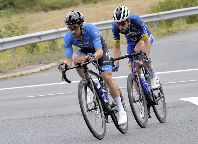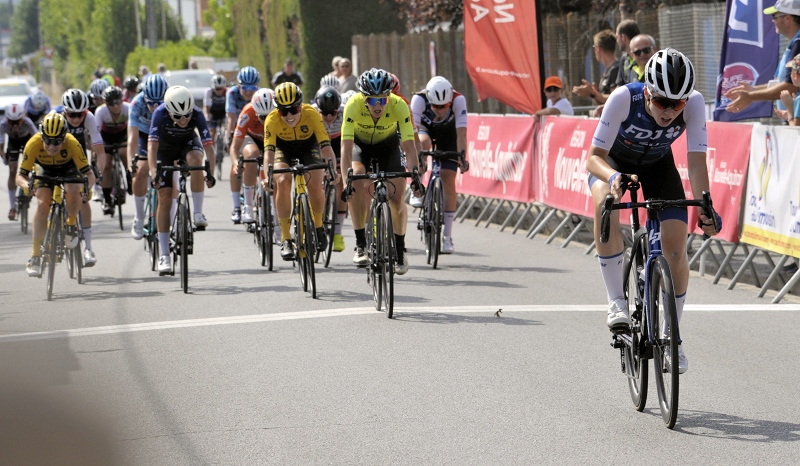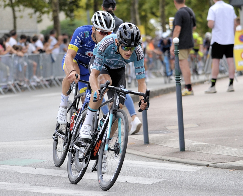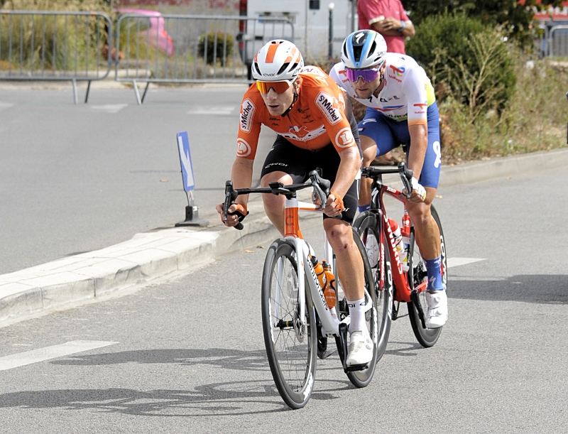 A 35 kms du but, le regroupement général s'effectue. A 30 kms de l'arrivée, Morne VAN NIEKERK (St-Michel Auber 93) sort du peloton bientôt rejoint par Sandy DUJARDIN (Total Energies). Les deux hommes unissent leurs efforts et comptent 30 secondes d'avance à 25 kms du final. Abel BALDERSTONE ROUMENS (Caja Rural Seguros) tente de faire la jonction sur la tête de course. Le peloton toujour à moins d'une minute des deux fuyards.