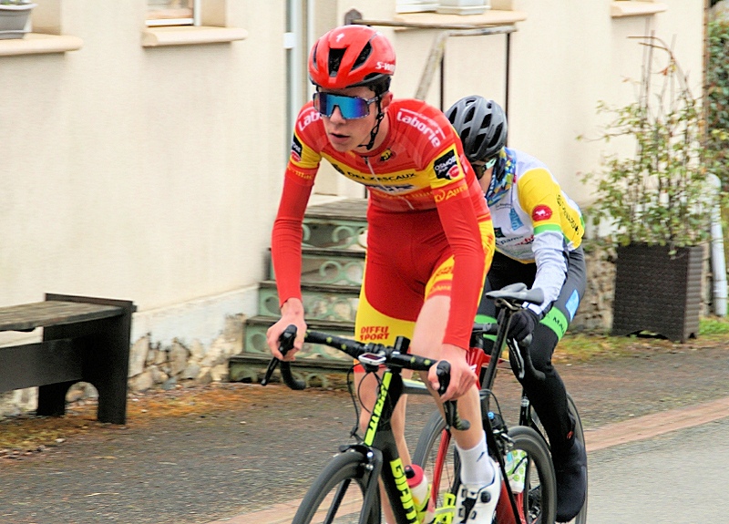 Il reste moins de 10 kms et l'allure est très rapide. Jordan JEGAT compte 10" d'avance mais à moins de 5kms de l'arrivée il est repris par l'avant-garde du peloton. Le sprint massif semble se profiler. Et c'est Orluis AULAR (Caja Rural) qui s'impose d'une demie-roue devant Axel ZINGLE (Cofidis) et Dorian GODON (Décathlon AG2R). A noter la belle 4ème place du régional Baptiste VADIC (TotalEnergies) et la 8ème place de Valentin RETAILLEAU (Décathlon AG2R).
