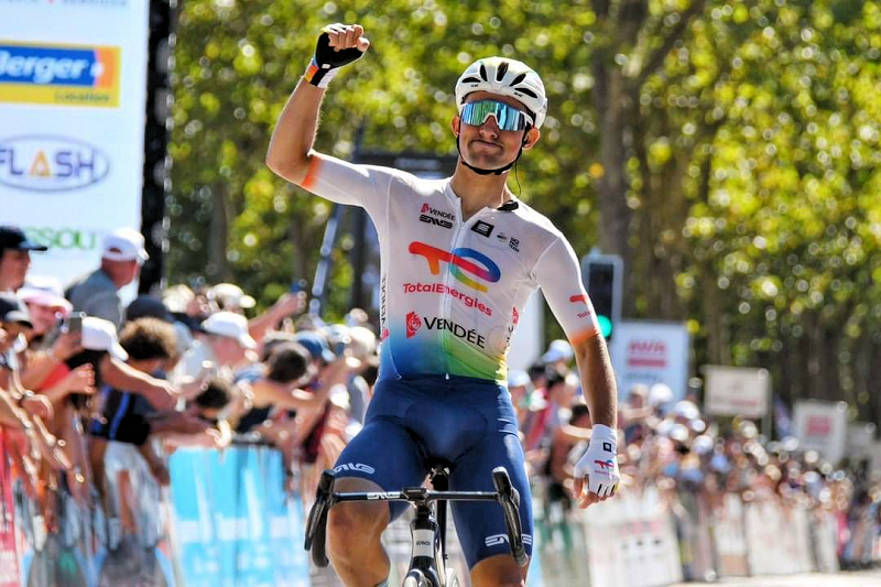 A l'amorce du dernier tour, Jordan JEGAT est en point de mire du peloton. Le sprint massif semble se profiler mais dans le dernier kilomètre une attaque fulgurante de Mathieu BURGAUDEAU (TotalEnergies) anéantie les espoirs des sprinters. Dans les derniers mètres l'homme de tête résiste au peloton pour s'imposer et remporter une victoire bien méritée.