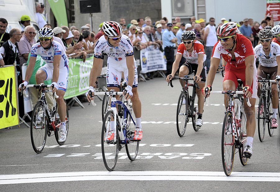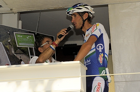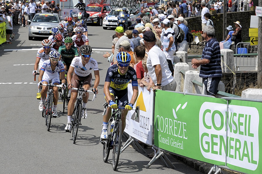 La deuxième étape, 100% corrèzienne, courrue entre Objat et Chaumeil, part sur les chapeaux de roues. Dès le passage à Allassac (km 5), un groupe de 10 hommes se détachent avec 20" d'avance sur le reste de la troupe. Le peloton fait la jonction rapidement avec les fuyards mais le rythme important fait des dégâts à l'arrière avec notamment l'abandon prématuré du leader de l'épreuve. Au premier passage à Chaumeil, un groupe de 16 hommes compte plud de 5 minutes d'avance sur le peloton mené par l'équipe Endura Racing. Au deuxième passage sur la ligne, la tête de course ne faiblie pas malgré l'accélération du peloton qui accuse un retard toujours supérieur à 4 minutes. La troisième montée du col des Géants est fatale à certains coureurs de l'échappée. Grégoire TARRIDE (VC La Pomme Marseille), Egoitz GARCIA (Cofidis), Jonas JORGENSEN (Saxo Bank), Guillaume BONNAFOND (AG2R La mondiale), Dimitri CHAMPION (Bretagne SChuller), Kasper KLOSTERGAARD (Saxo Bank), Kenny ELISSONDE (FDJ Bigmat), Cyril LEMOINE (Saur-Sojasun), Johann TSCOPP (BMC) vont se disputer la victoire finale. |