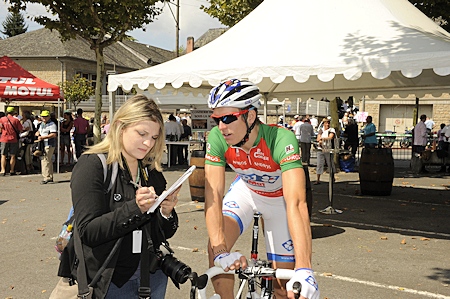 La première étape du Paris-Corrèze 2012 s'est disputée entre Contres (41) et Sassay (41). Les hostilités sont lancées dès le départ avec une attaque franche de Luc PERICHON (La Pomme Marseille) qui compte rapidement près de 3 minutes d'avance sur le peloton enmené par l'équipe FDJ BIGMAT. A 60 kms de l'arrivée, l'écart reste stable mais le peloton commence à réagir vigoureusement et juste avant les 30 derniers kilomètres un groupe de huit hommes parmis lesquels on retrouve TURGOT, PICHON et BODROGGI. Les neuf hommes ne creusent pas l'écart et sous l'impulsion des COFIDIS le pelton fait la jonction. L'arrivée est proche et malgré de nombreuses attaques, le sprint massif est attendu. Finalement, à l'issue d'une étape longue de 168.1 kms sans difficulté majeure, l'anglais de l'équipe BMC Racing, Adam BLYTHE s'impose au sprint devant Jonathan CANTWEL (Saxo Bank) et Kevin ISTA (Accent Jobs - Willems Veranda). Le vainqueur de l'étape prend la tête du classement général et endosse les maillots de meilleur jeune et du classement par points. Kévin DENYS (Veranda Rideau) remporte le classement de la montagne. |