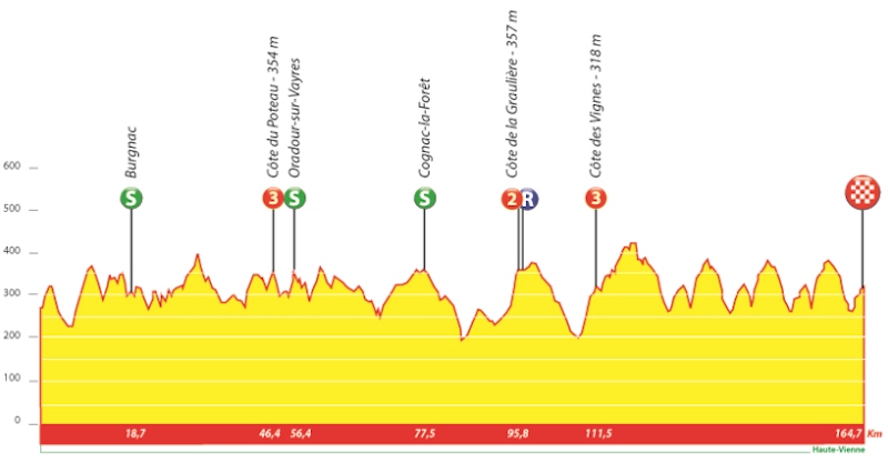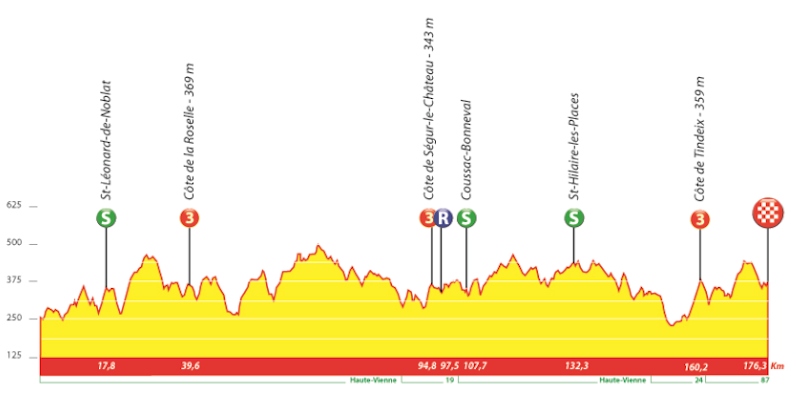 Au programme de cette ultime journée un parcours long de 165 kms entre Aixe sur Vienne et Limoges. Une baggare qui s'annonce épique tant les écarts entre les concurrents sont faibles. Dès les premiers kilmètres l'allure et vive tout comme la chaleur. Dès les premiers coups de pédales les attaques fusent mais le peloton veille. Le premier sprint intermédiaire à Burgnac (km 18) voit la victoire de Sonny COLBRELLI (Bardiani) qui récupère 3" de bonnifications, il pointe désormais à 6" du leader de la course car celui-ci termine deuxième de ce sprint et prend 2" de mieux. Rudy MOLARD complète le podium et empoche 1" de bonnification. Les prétendants à la victoire finale sont bien présents.