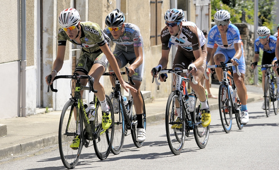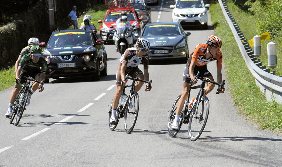 Quelques escarmouches secouent le peloton mais ce dernier est toujours groupé après 41 kilomètres. Au pied de la côte du Poteau (4.75% de moyenne), quatre hommes ont pris les devants : Yannick Martinez (Europcar), Axel Domont (AG2R La Mondiale), Etienne Van Empel (Roompot) et Romain Combaud (Armée de Terre). Au sommet de la première difficulté du jour, Romain COMBAUD (Armée de Terre) passe en tête suivi de ces trois compagnons d'échappée. Le quatuor compte 2'20" d'avance sur le peloton.