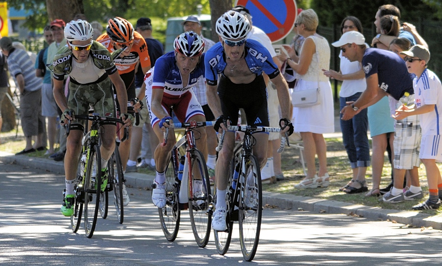 L'écart diminue de plus en plus : 40" à 4 kms, 25" à 3 kms, 20" à 2 kms. Le suspens est entier et la marge de manoeuvre des sept est très étroites. Mais à 2.5 kms de l'arrivée Nicolas EDET (Cofidis) et Quentin PACHER (Armée de Terre) sortent du peloton et au prix d'un bel effort font la jonction avec les hommes de tête. Le dernier kilomètre est franchit et l'avance n'est plus que de 10".