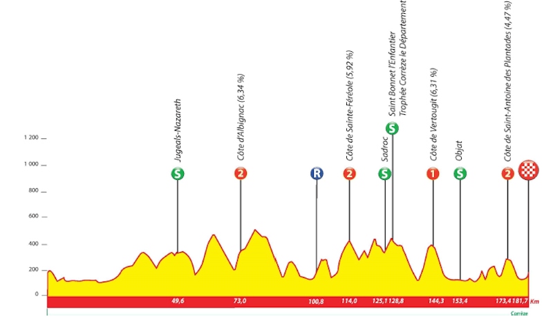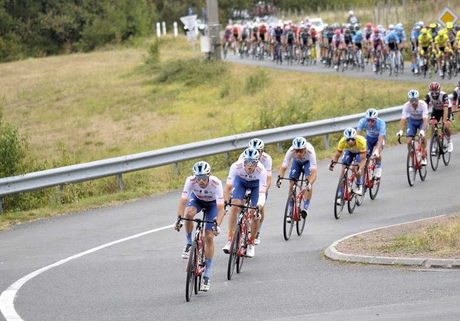 La côte d'Albignac, 1er MG de la journée, se profile et l'écart est descendu à moins de 2 minutes sous l'impulsion des hommes du maillot jaune. Alexis GOUGEARD passe en tête de cette première difficulté répertoriée au classement de la montagne. Sous la conduite de l'équipe Groupama-FDJ l'écart se réduit à nouveau. Trois hommes de la formation d'Yvon MADIOT s'extirpent du peloton : Kevin GENIETS, Valentin MADOUAS et Attila VALTER. A 95 kms de l'arrivée, les trois hommes en contre viennent de faire la jonction avec la tête de course. A la mi-course, le peloton accuse un retard de plus d'une minute malgré un tempo élevé de l'équipe Movistar.