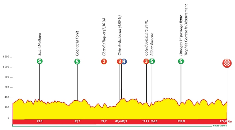 La quatrième étape mène les coureurs de Saint-Laurent sur Gorre à Limoges pour un périple haut-viennois de près de 175 kms. Plusieurs tentatives en début d'étape mais la vive allure du peloton ne permet pas la formation d'échappées. Après le premier sprint intermédiaire du jour, 14 coureurs se sont isolés à l'avant de la course. Au deuxième sprint intermédiaire remporté par Stan DEWULF (AG2R Citroën), comme le premier, le peloton est pointé à 1'40".