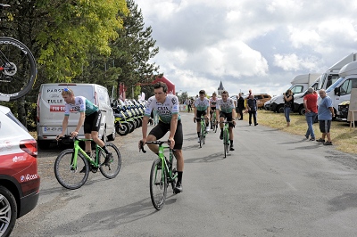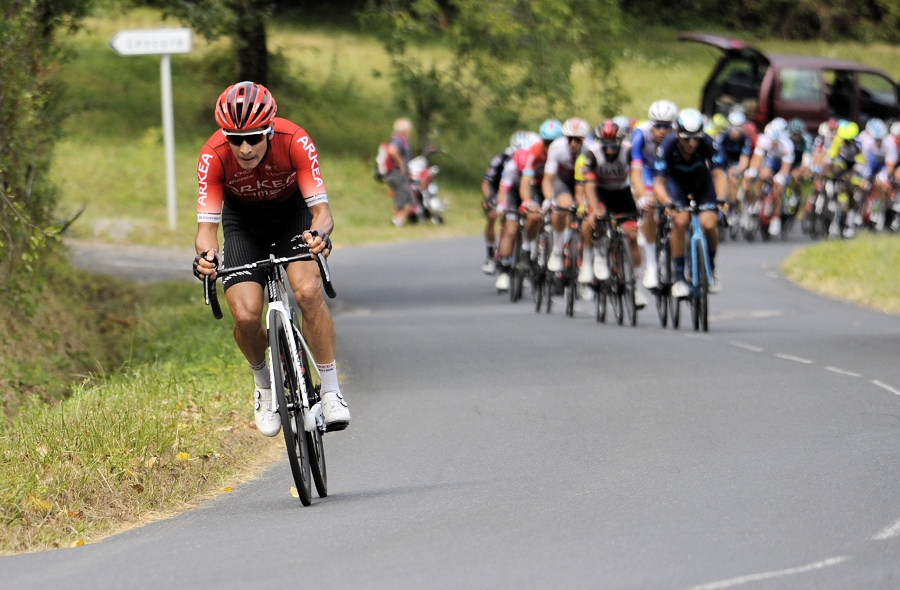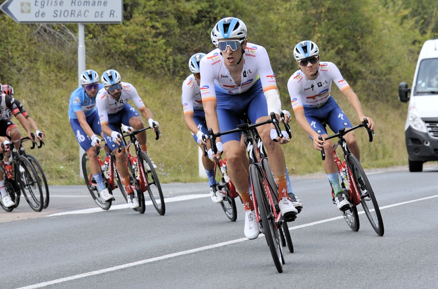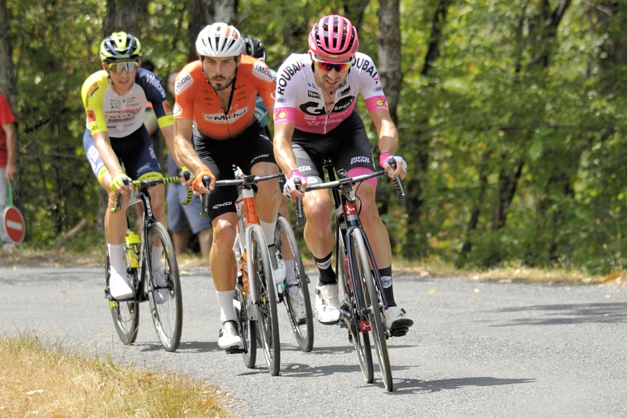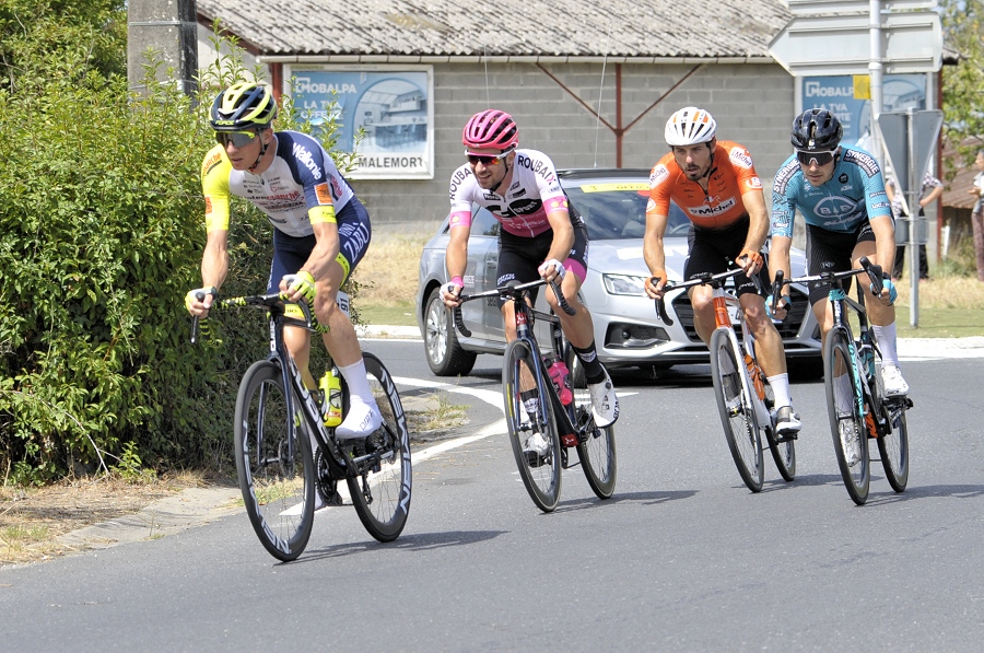 Derrière, le groupe de contre a été repris. Alessandro COVI(UAE) est intercalé entre les échappées et le peloton. Les hommes de tête possèdent toujours plus de 5 minutes d'avance après 60 kms de course. La côte de Siorac de Ribérac se profile et Maxime URRUTY se dresse sur ses pédales pour franchir en solitaire le sommet et glaner les points de la montagne. Kévin BESSON (Nice Métropole) prend avec une dizaine de seconde d'avance sur le peloton au sommet de ce deuxième MG de la journée.