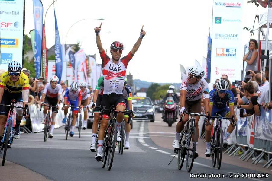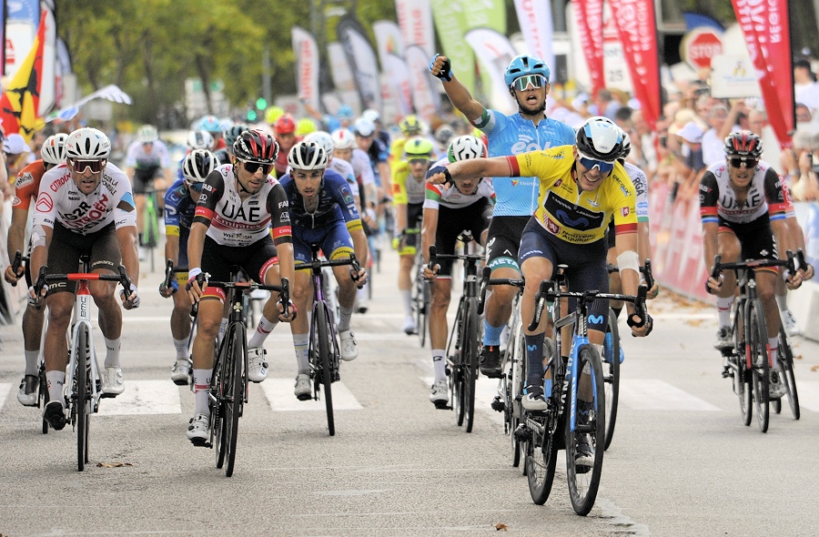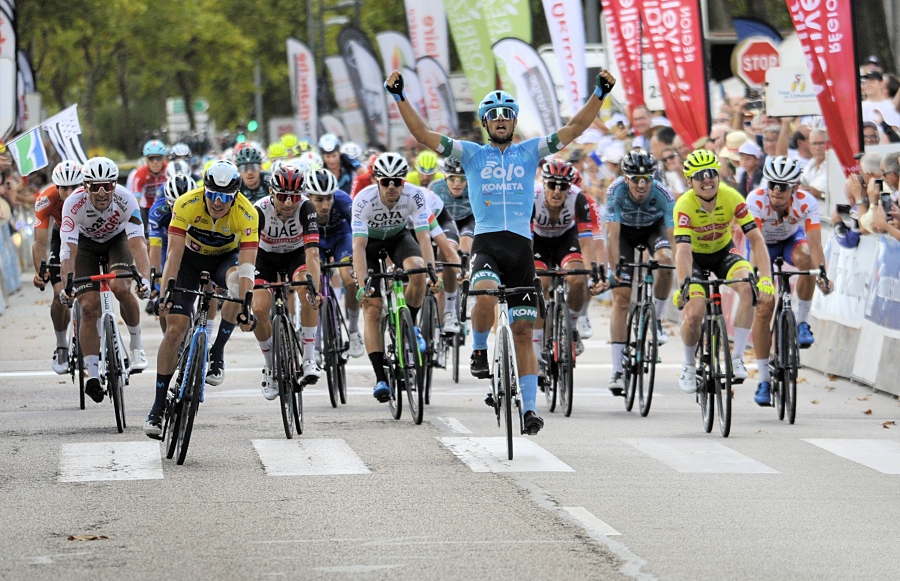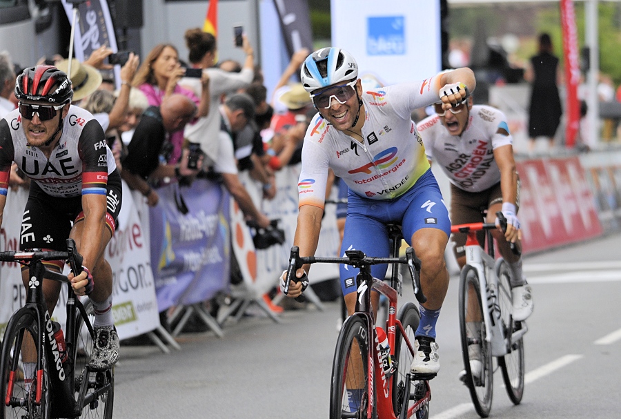 Sous l'impulsion d'un peloton à l'avant duquel on retrouve les hommes de la Movistar, le coureur de la FDJ rentre dans les rangs. Le peloton arrive à vive allure dans les deux derniers kilomètres et la victoire semble destinée au sprinteur. Mais c'est sans compter la déterminationn de Julien SIMON (Total Energies) qui prend sa chance en attaquant dans le dernier kilomètre.
