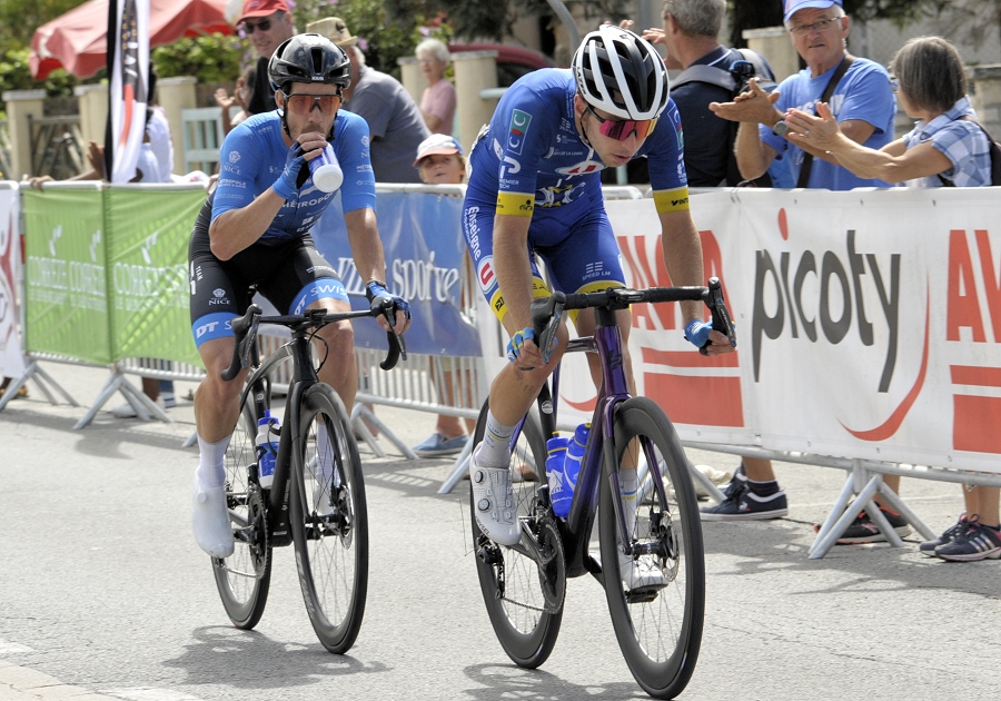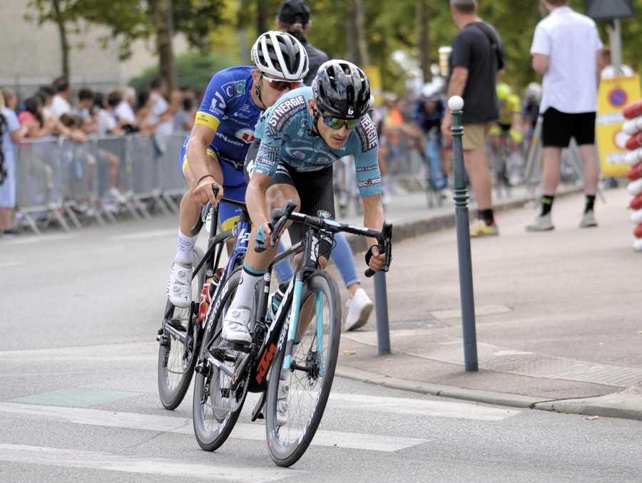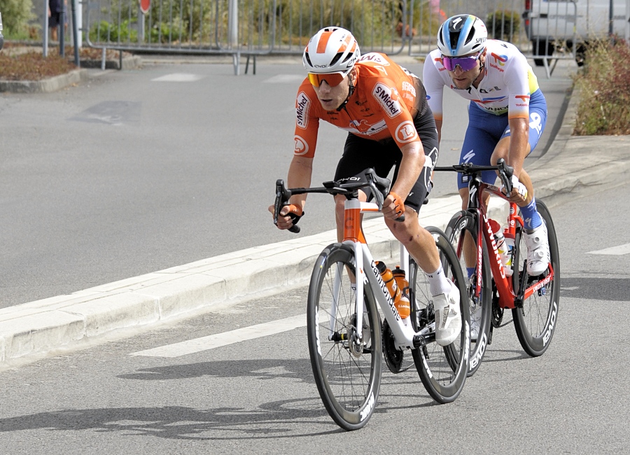 A 35 kms du but, le regroupement général s'effectue. A 30 kms de l'arrivée, Morne VAN NIEKERK (St-Michel Auber 93) sort du peloton bientôt rejoint par Sandy DUJARDIN (Total Energies). Les deux hommes unissent leurs efforts et comptent 30 secondes d'avance à 25 kms du final. Abel BALDERSTONE ROUMENS (Caja Rural Seguros) tente de faire la jonction sur la tête de course. Le peloton toujour à moins d'une minute des deux fuyards.