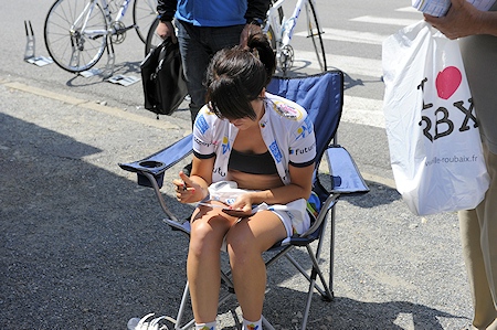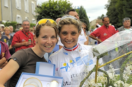 Edwige Pitel : «Elle était mieux placée que moi (en parlant de Grete Treier). Je n’ai pas pu faire le sprint car je me suis fais bloqué par une des fille et un gendarme qui nous a envoyé sur la droite (à cause d’un accident entre deux motards lors de l’arrivée, ndrl). (Au sujet de la suite du Tour) On verra après le chrono de demain qui permettra de distribuer les cartes au général. Je sors du très difficile Tour d’Italie avec un peu de fatigue. Cela s’est ressenti aujourd’hui : je n’avais pas de très bonnes jambes. D’autant plus que j’ai trouvé les côtes un peu courtes et que je suis plus à mon aise sur les longues montées.