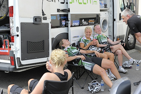 Damien Pommereau (directeur sportif Vienne Futuroscope) : « C’est dommage. On avait deux filles qui étaient dans l’échappée, elles se sentaient bien mais elles étaient mal placées lorsque ça a attaqué alors elles se sont retrouvées piégées. Elles ont bien tenté de rouler derrière mais c’était trop tard, les meilleurs étaient déjà à l’avant. Maintenant, elles possèdent un retard non négligeable sur les huit premières mais on compte sur Julie Beveridge, championne du Canada CLM, pour faire un bon chrono demain (vendredi, ndrl) et si possible terminer dans les dix premières au général ».